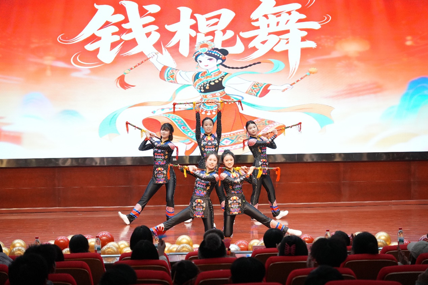 尽显中国青年的奋进风采,《钱棍舞》则用竹木铜钱打造的传统道具,演绎出烟火气十足的民俗活力,两个