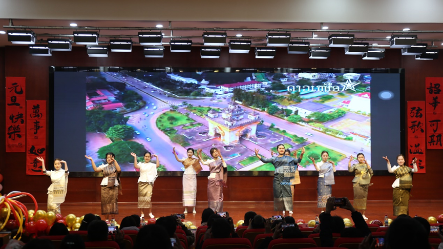 2025年12月30日晚,通识教育与国际学院“中老同心,喜迎新春”2026年元旦晚会,在望犀校区明