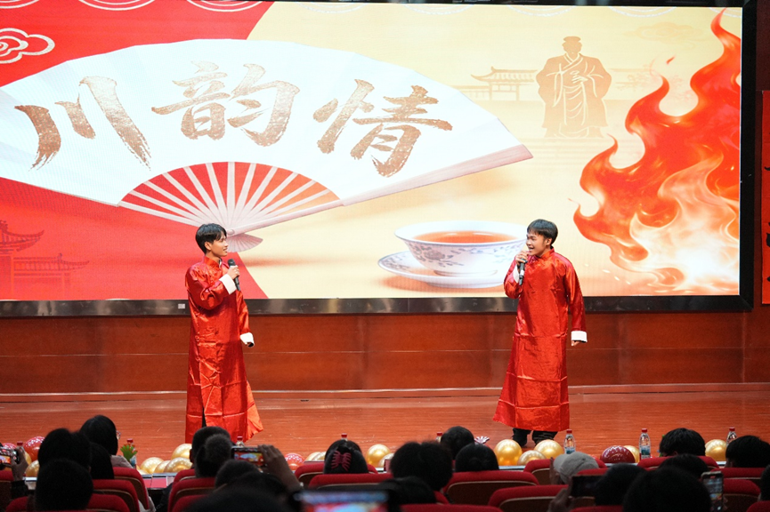 最让人惊喜的当属相声《川韵情》!留学生孙杰斌、吉诺熟练运用四川方言,还巧妙融入川剧绝活与