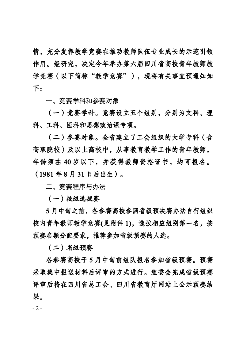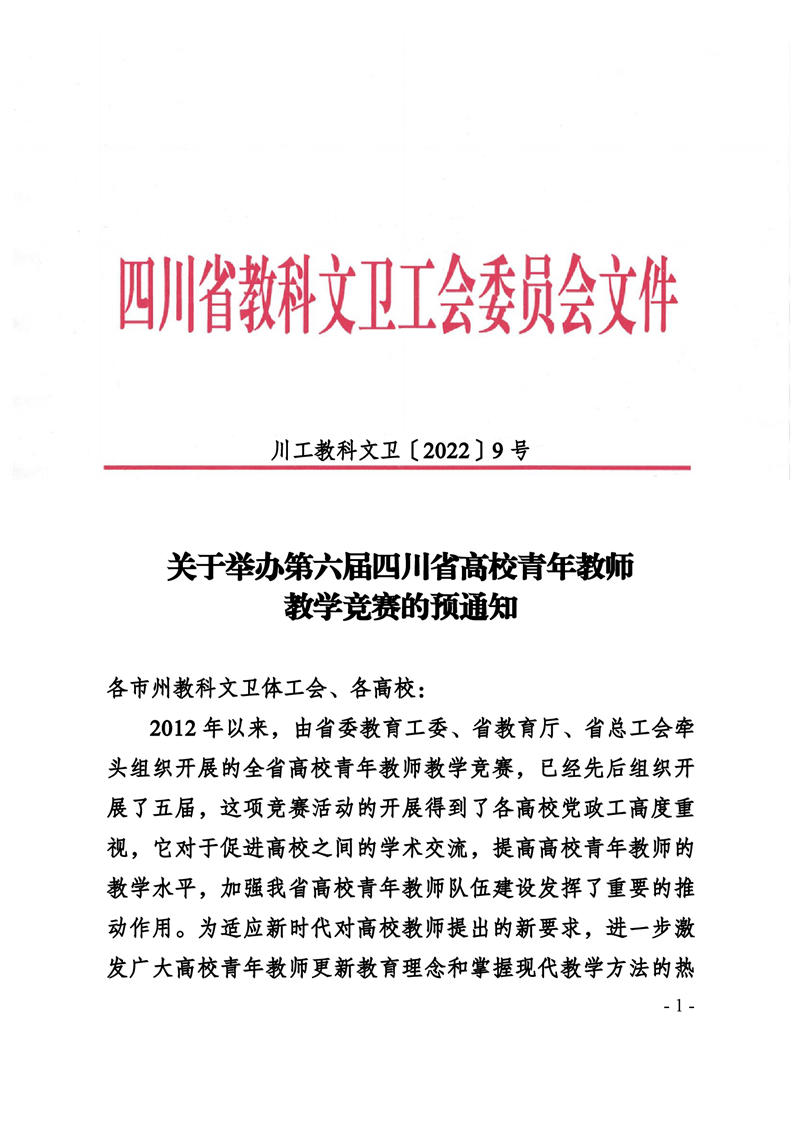 关于举办第六届四川省高校青年教师教学竞赛的预通知