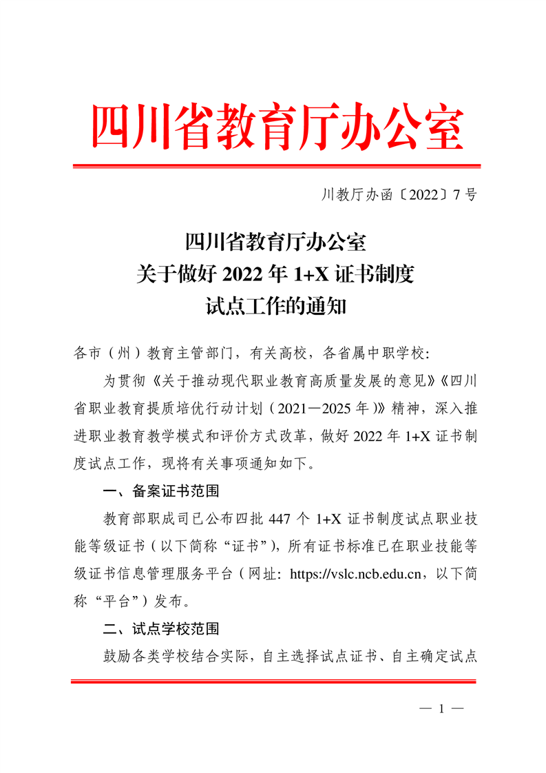 四川省教育厅办公室关于做好2022年1+X证书制度试点工作的通知