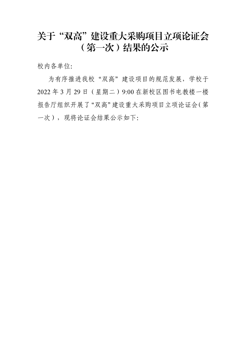 关于“双高”建设重大采购项目论证结果的公示