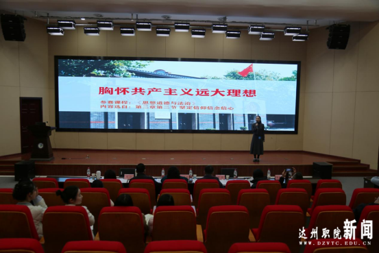 比赛邀请四川省“高职高专思想政治理论课”分教指委委员、四川省高校思想政治教育名师工作室负责人刘忠珍教授,达州中医药职业学院马克思主义学院院长邓磊,四川省高校“精彩一课”“特等奖”获得者、四川文理学院丁玉洁老师等5位校内外专家担任评委。