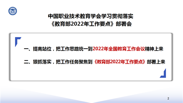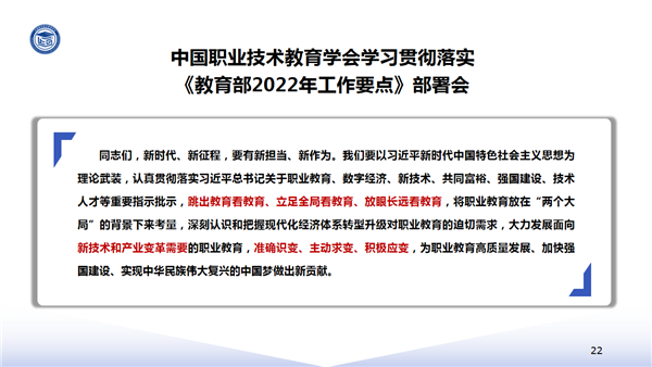 中国职业技术教育学会学习贯彻落实《教育部2022年工作要点》部署会